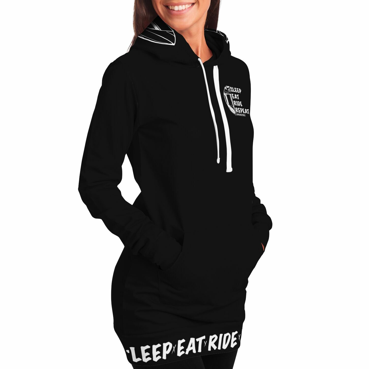 This longline hoodie is made from a soft cotton and polyester faced fabric with a nice brushed fleece on the inside. Fitted with a feminine shaped silhouette for ultimate comfort. Each panel is individually printed, cut and sewn to ensure a flawless graphic with no imperfections.