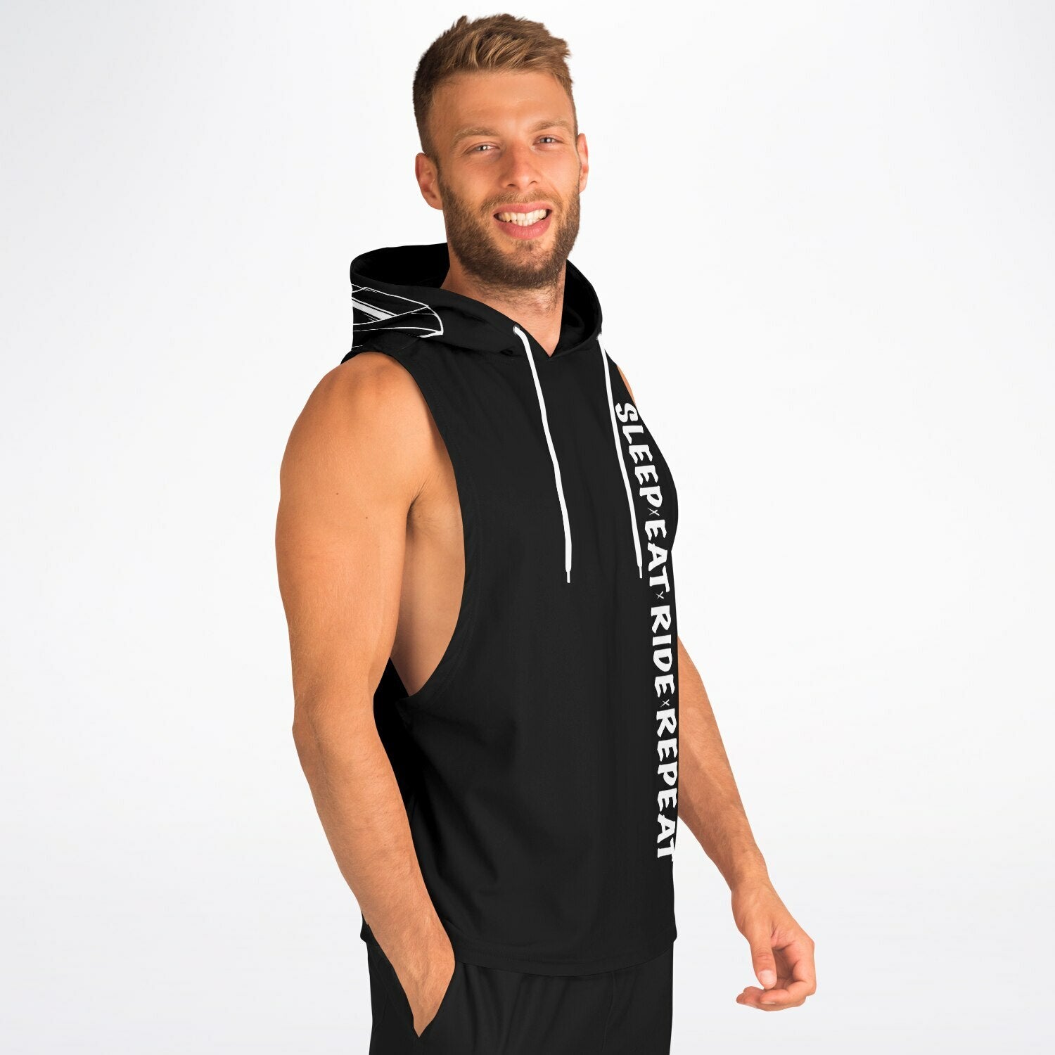 Unleash the power of sustainable fashion with our Drop Armhole Hoodie. This modern classic, birthed from the bodybuilding era, has been redesigned to support your every move. Crafted from recycled polyester and spandex, it offers a soft touch on the outside and the flexibility you crave. Its distinctive double-layer hood, coupled with drawstrings, allows you to curate your style. Available in sizes XS to 4XL, it's designed for every physique.