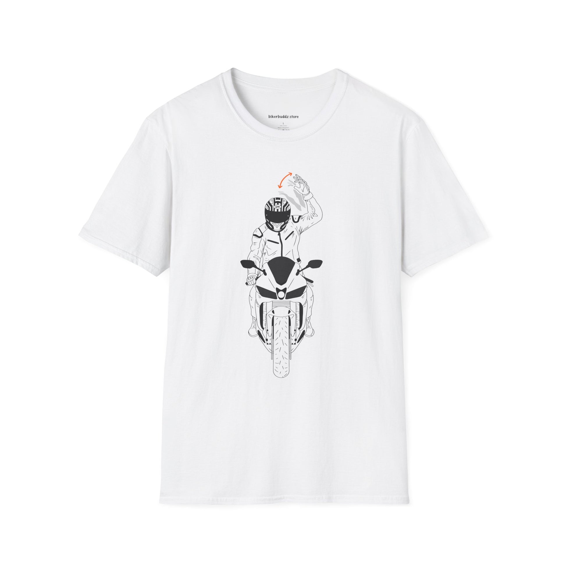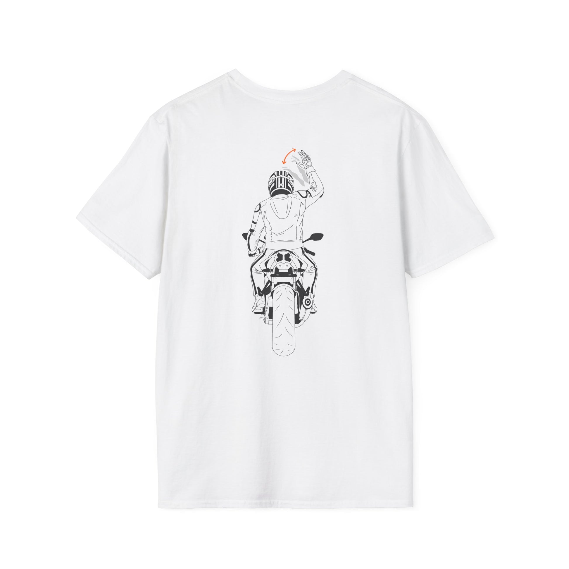 This lightweight cotton tee feels like the open road. A minimalist black-and-white rider illustration—front and back—captures the quiet focus of a lone motorcyclist leaning into a turn. Short, deliberate lines and subtle red accents give the design motion without shouting. Wear it layered under a jacket or on its own during a morning ride, a weekend coffee stop, or when you just want to carry that road-minded calm into the city. The soft ring-spun fabric drapes easily, the crew neck stays put, and the tear-away label keeps the back of your neck comfortable after a long day in the saddle.